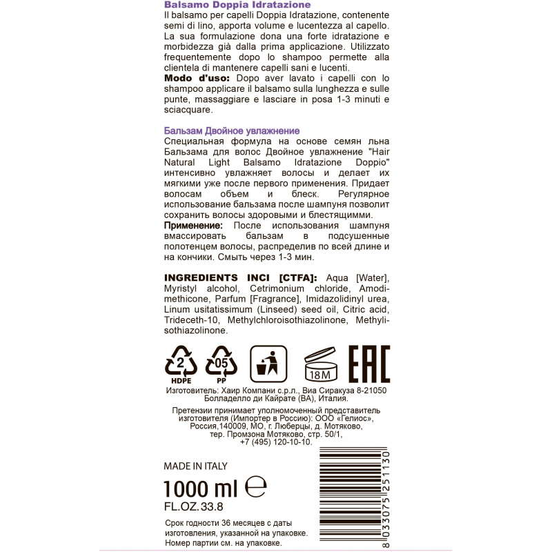 Бальзам интенсивно увлажняет, успокаивает и питает. Подходит для всех типов волос, особенно эффективно помогает сухим, вьющимся от природы и волосам с химической завивкой. После применения волосы сильные, мягкие и послушные. Защищает от воздействия солнечных лучей, сохраняя цвет окрашенных волос. Успокаивает кожу головы, устраняет раздражение. Состав: вода, лимонная кислота, метилизотиазолинон, льняное масло, парфюм, имидазолидинилмочевина, метилхлоризотиазолинон, цетримония хлорид, тридецет-12, амодиметикон. Способ применения: нанести на вымытые шампунем и подсушенные полотенцем волосы. Тщательно распределить по всей длине. Оставить на 3-5 минут. Смыть. Объем: 1000 мл.
