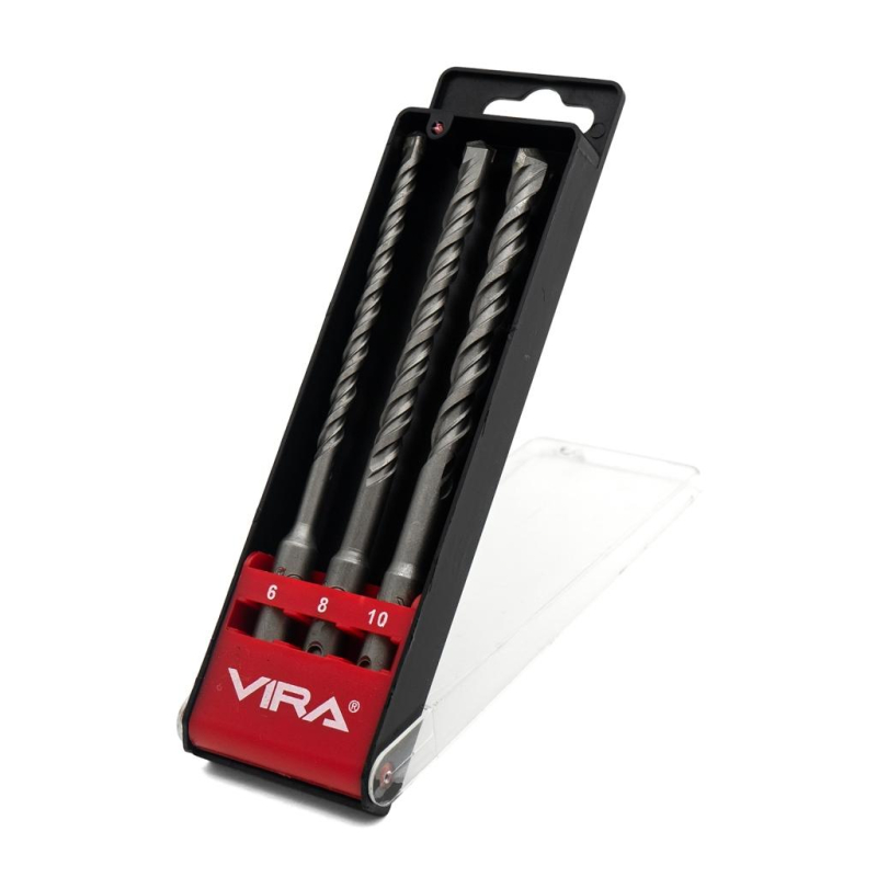 Набор буров Vira 3 штуки, от 6 до 10 мм, длина 160 мм. Набор состоит из наиболее часто используемых в быту буров: 6x160 мм, 8x160 мм и 10x160 мм. Они предназначены для перфоратора с системой крепления SDS +. Буры отлично подходят для просверливания отверстий в твердом материале (бетонная стена, кирпичная кладка и т.д.).