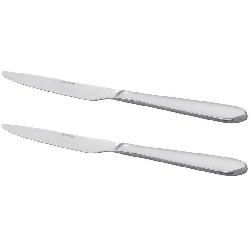 Нож столовый Nadoba (711812) 23 см нержавеющая сталь (2 штуки в упаковке). Нож изготовлен из высококачественной нержавеющей стали. Высокая степень полировки. Устойчивы к деформациям и воздействию любых сред, не меняют вкус блюд и долгое время сохраняют превосходный вид. Длина ножа: 230 мм Разрешается мытье в посудомоечных машинах.