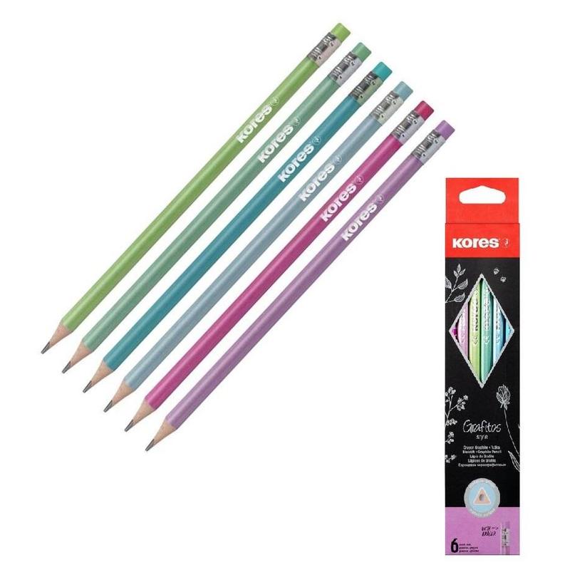 Карандаши чернографитные Grafitos Style, HB, трехгранные, заточенные, с цветным ластиком на конце, цвет корпуса в ассортименте. 6 карандашей в картонной упаковке с подвесом.