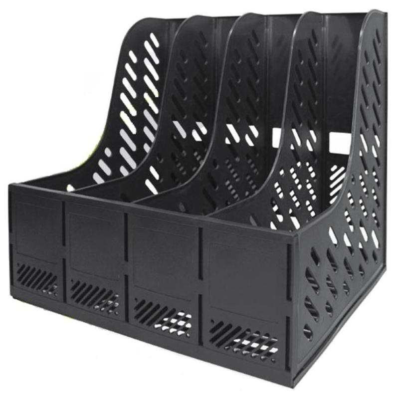 Вертикальный накопитель Attache выполнен из прочного пластика черного цвета. Минималистичный дизайн лотка создаст на Вашем рабочем месте ощущение легкости. Не занимает много места на рабочем столе. Позволяет удобно хранить и систематизировать документы и печатную продукцию формата А4. Имеет 4 отделения равной ширины. Размеры изделия (ДxШxВ): 310x370x310 мм. Вес: 560 г. Конструкция требует самостоятельной сборки. Удобен для хранения большого объема документов. В комплекте есть этикетка для маркировки. Количество в транспортном коробе - 10 штук.