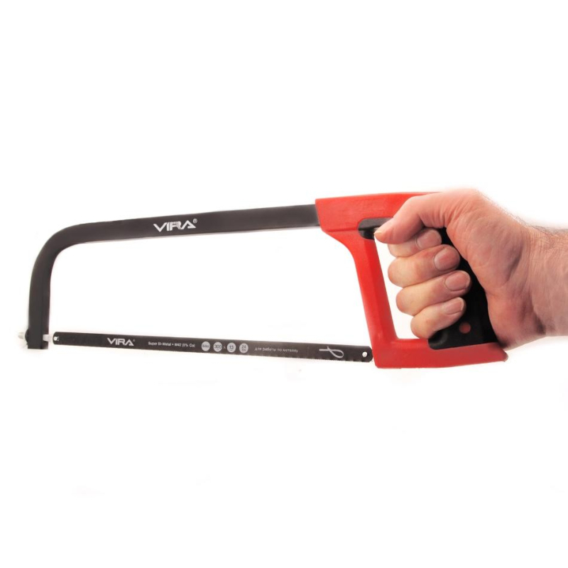 Ножовка Vira по металлу 300 мм с обрезиненной рукояткой (801010) лучковая, используют для распиливания металлических деталей и заготовок. Корпус ножовки-алюминиевый. Этот материал совмещает в себе необходимую прочность с легкостью-вес инструмента 260 г. Рукоятка из пластика и резинового покрытия надежно обхватывается и не скользит в ладони, не режет ее.КомплектацияНожовка;Упаковка.