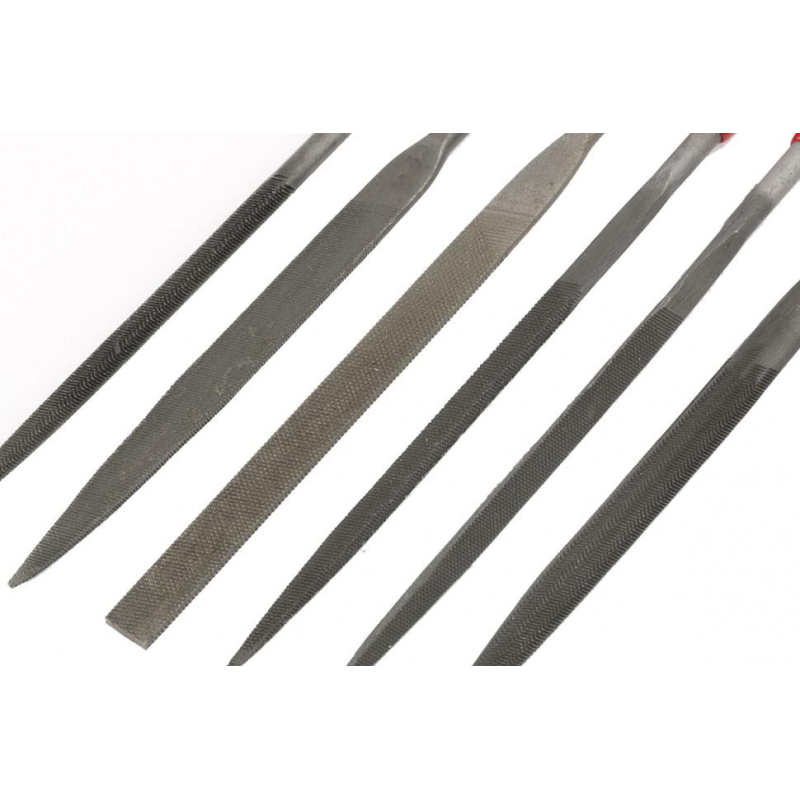 Набор надфилей Matrix 15816 предназначен для выполнения мелких слесарных работ. Надфиля изготовлены из высокоуглеродистой стали, профили имеют двойную перекрестную насечку. Количество предметов и состав набора напильников: 1 шт - плоский надфиль 160 мм 1 шт - полукруглый надфиль 1 шт - круглый надфиль 1 шт - треугольный надфиль 1 шт - квадратный надфиль