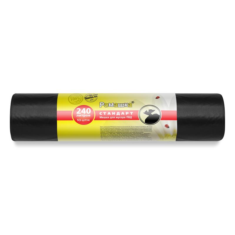 Мешки для мусора на 240 л Стандарт черные (ПВД, 30 мкм, в рулоне 10 шт, 90х130 см)
