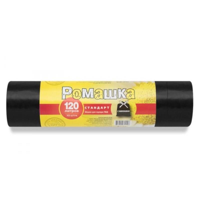 Мешки для мусора на 120 л с завязками Стандарт черные (ПВД, 30 мкм, в рулоне 10 шт, 70х110 см)