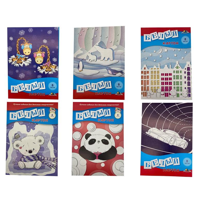 Картон белый Апплика (А4, 8 листов, 1 цвет, немелованный)