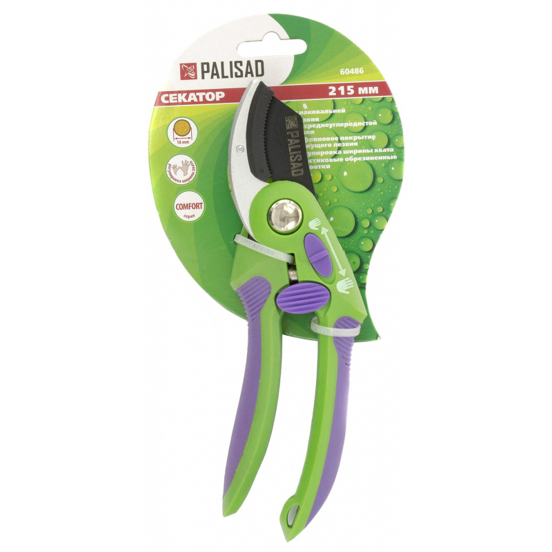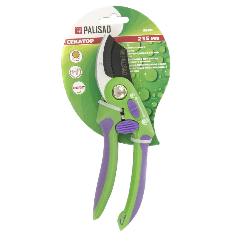 Секатор Palisad (60486)Предназначен для обрезки твердых и сухих веток, засохшей виноградной лозы. Устойчивое усилие реза благодаря упорной пластине, удерживающей ветку. Узкое, заточенное с двух сторон лезвие, осуществляющее рез по принципу ножа с упором на пластину. Обрезиненные рукоятки имеют дополнительную регулировку по ширине захвата (функция "большая-малая рука").Внешний вид и/или характеристики товара могут быть изменены производителем в соответствии с производственным процессом.