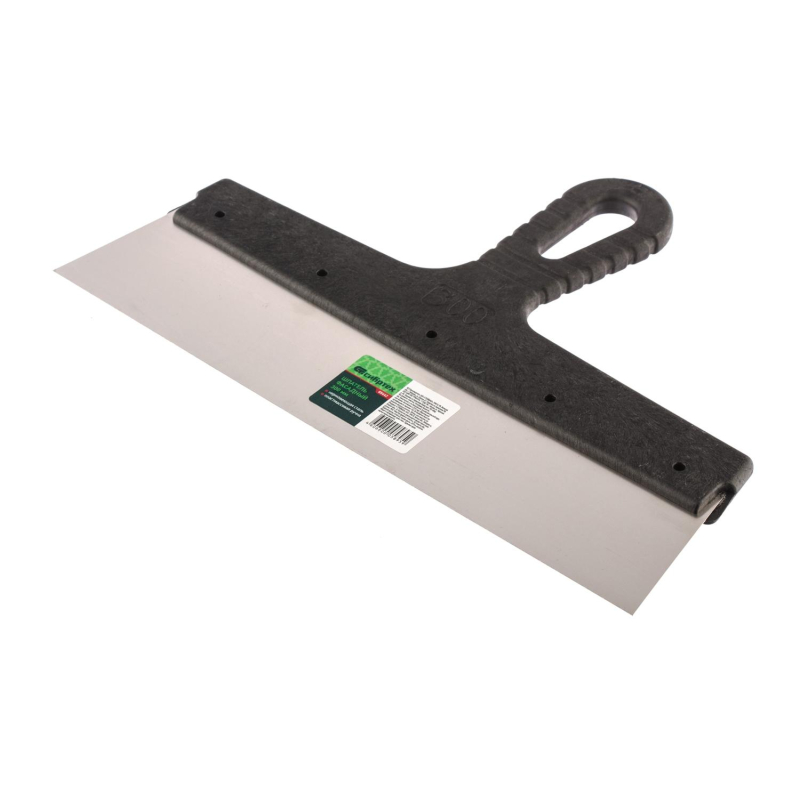 Шпатель фасадный из нержавеющей стали, 300 мм, пластмассовая ручка Сибртех. Шпатель предназначен для нанесения, выравнивания и сглаживания шпаклевочного слоя на больших и малых поверхностях. Полотно шпателя изготовлено из нержавеющей стали. Облегченная ручка из ударопрочной пластмассы, имеет специальную изогнутую форму, что обеспечивает максимально удобную работу. Внешний вид и/или характеристики товара могут быть изменены производителем в соответствии с производственным процессом.