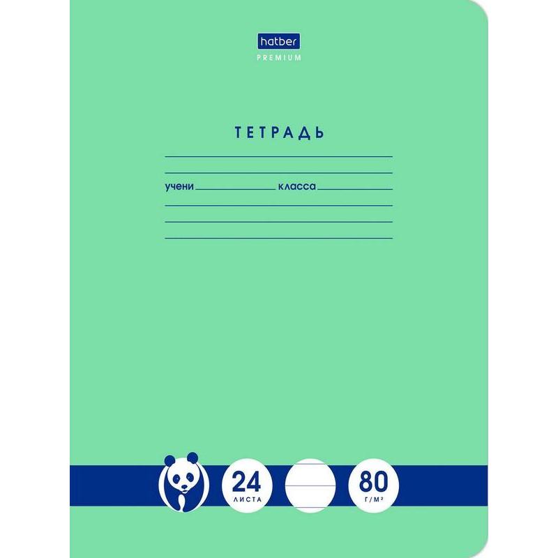 Тетрадь А5 формата (размер 165x205 мм) 24 листа. Обложка: мелованный картон плотностью 190 г/кв.м. Внутренний блок: офсет 80 г/кв.м, линия, красные поля, белизна - 100%. Скрепление: скоба. Зеленые тетради классического дизайна, дополненные милым изображением панды, не оставят равнодушным ни одного школьника. Блок повышенной плотности и гладкости идеально подходит для всех видов пишущих принадлежностей, включая гелевые, капиллярные и перьевые ручки: написанное на одной стороне не просвечивает на другой. Внешний вид тетрадей надолго сохранит свою привлекательность за счет скругленных уголков. Внутренний блок с четко прорисованными полями и линовкой соответствуют высокому качеству полиграфии. Тетради ТМ Hatber российского производства отпечатаны на современном высокотехнологичном оборудовании и соответствуют стандартам качества.