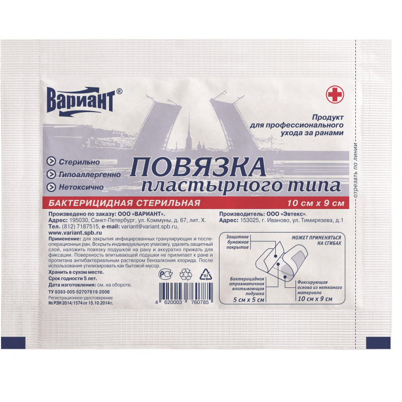 Применяется при первичной, вторичной, послеоперационной обработке ран (в том числе с нанесением мазевых составов и растворов), оказания первой медицинской помощи при незначительных повреждениях, для безопасной фиксации катетеров и дренажных трубок, подходит для применения у пациентов, как с нормальной, так и с чувствительной кожей. Состав: фиксирующая основа из нетканого полотна с гипоаллергенным акриловым клеевым слоем, впитывающая подушка из нетканого материала, пропитанная антибактериальным раствором хлорида бензалкония. Стерильность и одноразовый характер использования, что создает благоприятные условия для постоянной готовности к применению, упрощает процедуру перевязки, экономит перевязочный материал, прочно фиксируются к коже, не оставляя после себя следов раздражения. Идеально повторяют естественный контур тела в месте наложения. Не ограничивают объема движений и не смещаются. Впитывающая способность подушки - 850 г/кв.м. Слой подушки, контактирующий с раной, имеет атравматичную структуру и исключает вторичное травмирование раны при перевязке. Срок годности 5 лет.
