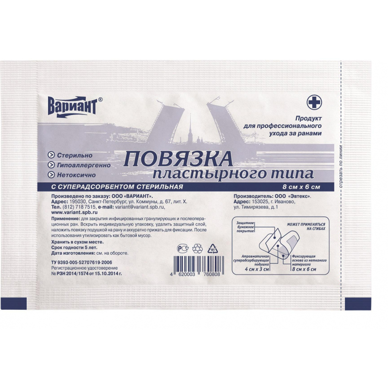 Применяется при первичной, вторичной, послеоперационной обработке ран (в том числе с нанесением мазевых составов и растворов), оказания первой медицинской помощи при незначительных повреждениях, для безопасной фиксации катетеров и дренажных трубок, подходит для применения у пациентов, как с нормальной, так и с чувствительной кожей. Состав: фиксирующая основа из нетканого полотна с гипоаллергенным акриловым клеевым слоем, впитывающая подушка из инновационного нетканого материала повышенной плотности. Стерильность и одноразовый характер использования, что создает благоприятные условия для постоянной готовности к применению, упрощает процедуру перевязки, экономит перевязочный материал, прочно фиксируются к коже, не оставляя после себя следов раздражения. Идеально повторяют естественный контур тела в месте наложения. Впитывающая подушка из инновационного материала, не содержит химических абсорбентов. Не ограничивают объема движений и не смещаются. Впитывающая способность подушки - 1300 г/кв.м. Слой подушки, контактирующий с раной, имеет атравматичную структуру и исключает вторичное травмирование раны при перевязке. Срок годности 5 лет.