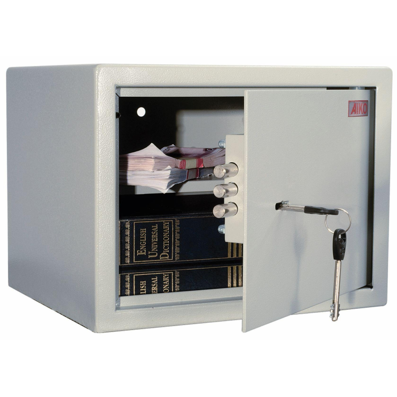 Сейф мебельный Aiko Т-23. Предназначены для хранения незначительных ценностей, документов и т.д. в домашних условиях. Комплектуется ключевым замком. - устойчивость к взлому - ГОСТ Р 50862-2005, класс НО; - толщина лицевой панели - 3 мм; - толщина металла корпуса 1,5 мм; - замок - 1 ключевой; - тип покрытия - порошковое; - цвет - оттенок серого с эффектом молотковой эмали; - возможность анкерного крепления к полу и к стене. Дополнительные элементы (папки, кэшбоксы) в комплект сейфа не входят и заказываются отдельно. Изображения товаров на сайте не могут гарантировать точную цветопередачу.