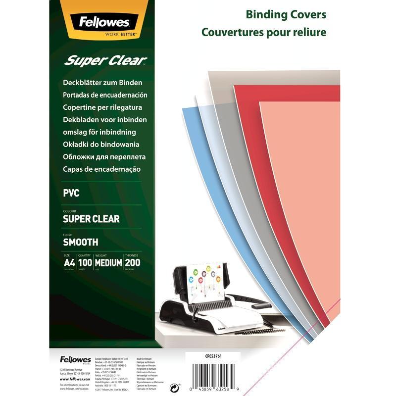 Обложки для переплета пластиковые Fellowes A4 200 мкм прозрачые глянцевые (100 штук в упаковке)