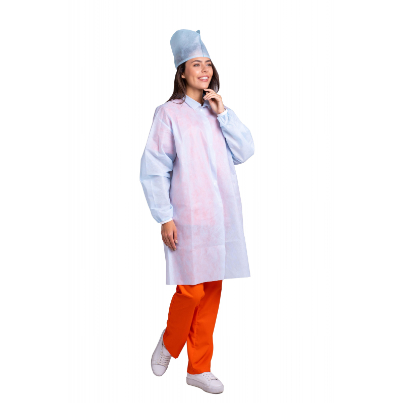 Халат медицинский нестерильный из нетканых материалов, одноразовый на кнопке применяется при соблюдении санитарных норм для сохранения гигиены и чистоты. Показания: предупреждение перекрестного заражения пациентов и медицинского персонала во время эпидемии, предотвращение заражения заболеваниями, которые передаются от больного человека здоровому воздушно-капельным путем, защита кожных покровов и одежды от мелкой пыли, грязи, различного вида бытовых и промышленных загрязнений (например кислот, щелочей и других агрессивных или пачкающихся растворов).