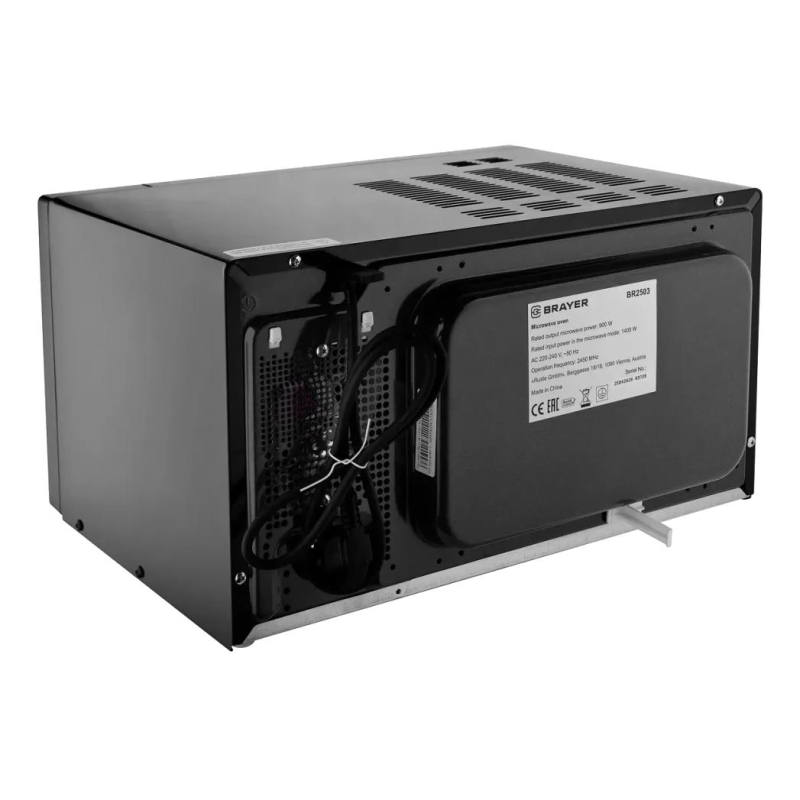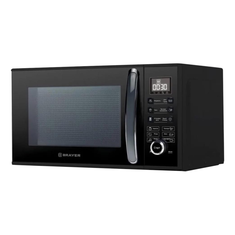 Микроволновая печь Brayer BR2503 представлена в строгом черном корпусе с покрытием внутренних стенок камеры биокерамической эмалью. Оборудование может работать в комбинированном, режиме гриля или микроволн. Предусматривается наличие поворотного стола и поддона с диаметром 27 см. Устройство весит 14.1 кг и обладает размерами 48.3x28.1x38.7 см. Прибор Brayer BR2503 оснащен шестью программами, таймером на 95 минут и функцией авторазморозки. Панель управления состоит из кнопок и поворотных рычагов, а также дополняется дисплеем с часами. Безопасной эксплуатации способствует наличие блокировки от детей. Печь поставляется со стеклянным поддоном и вращающимся кольцом.
