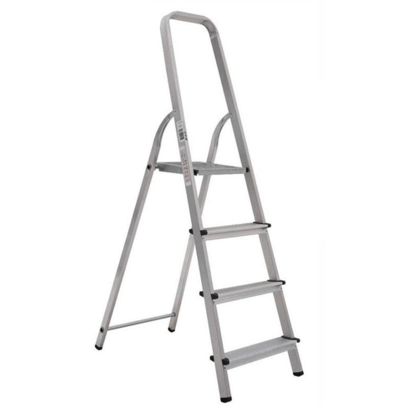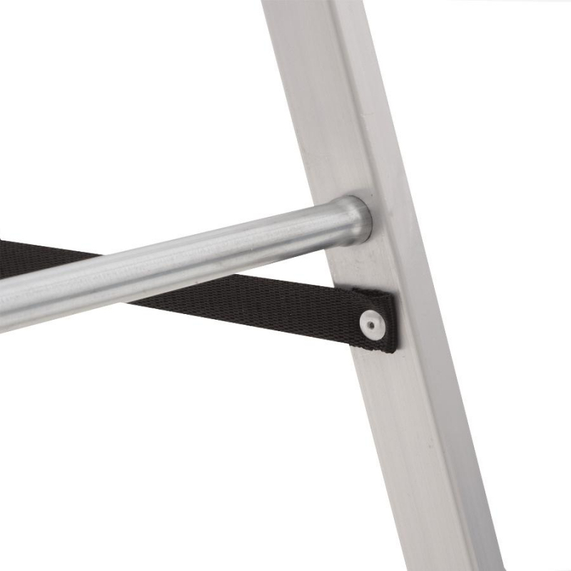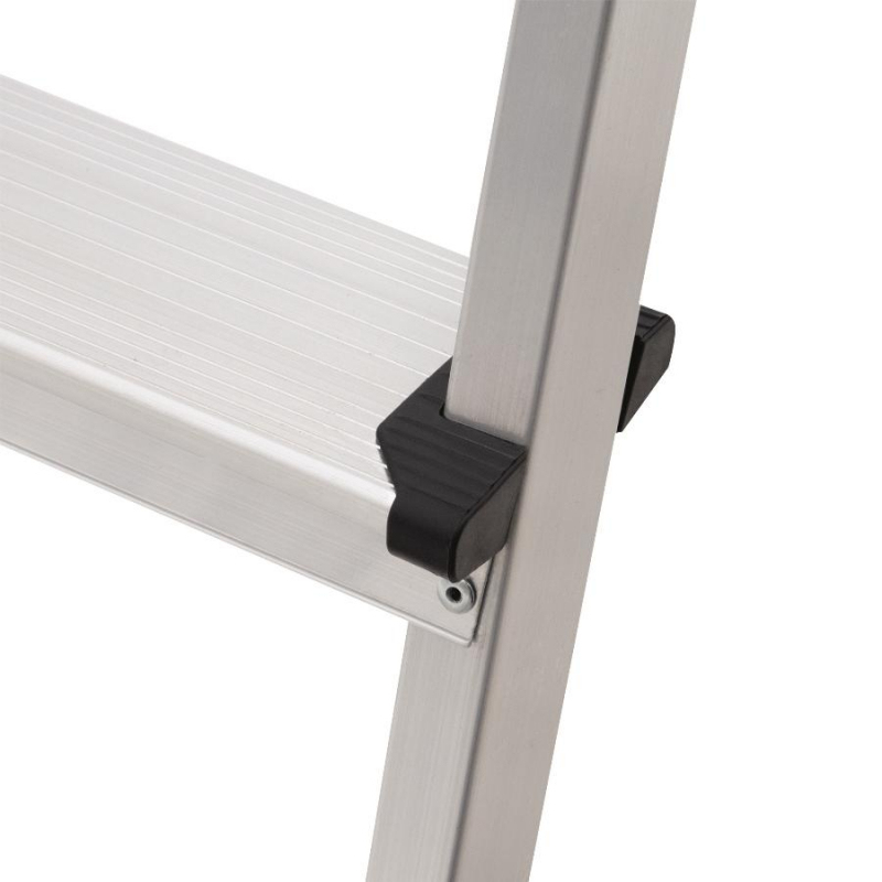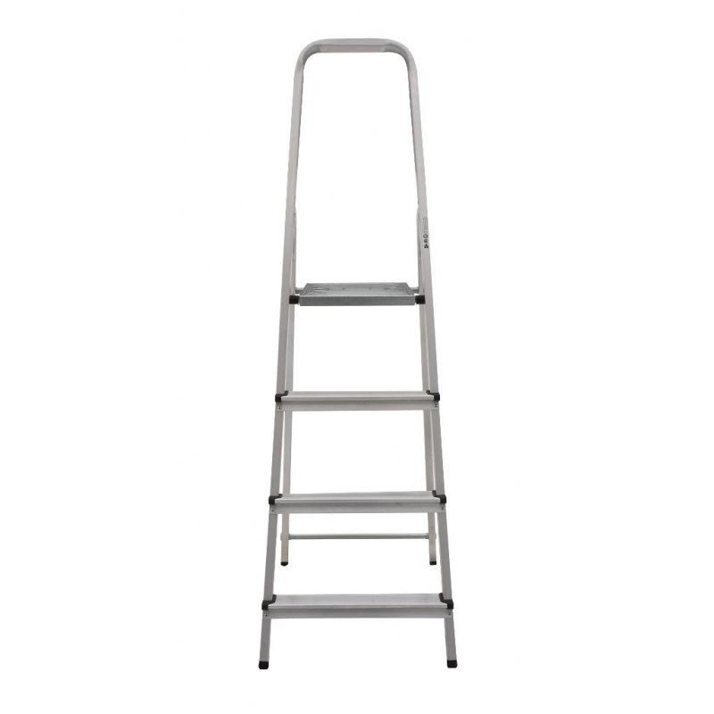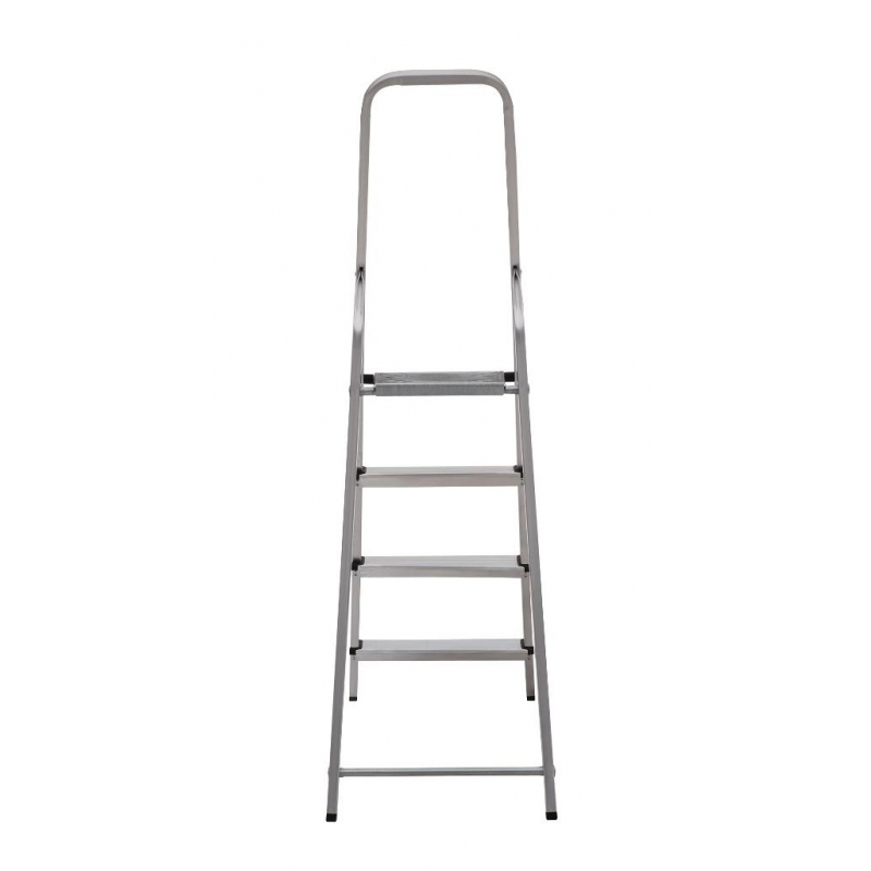 Высокая прочность и надежность при небольшом весе изделия. Легко устанавливается и обеспечивает высокий уровень комфорта. Стойки и ступени из экструдированных алюминиевых профилей. Опорные наконечники из прочного пластика для устойчивого положения. Компактность при хранении и транспортировке. Практичность и внимание к каждой детали гарантируют безопасность работы на любой высоте. Стремянка имеет 4 ступени.