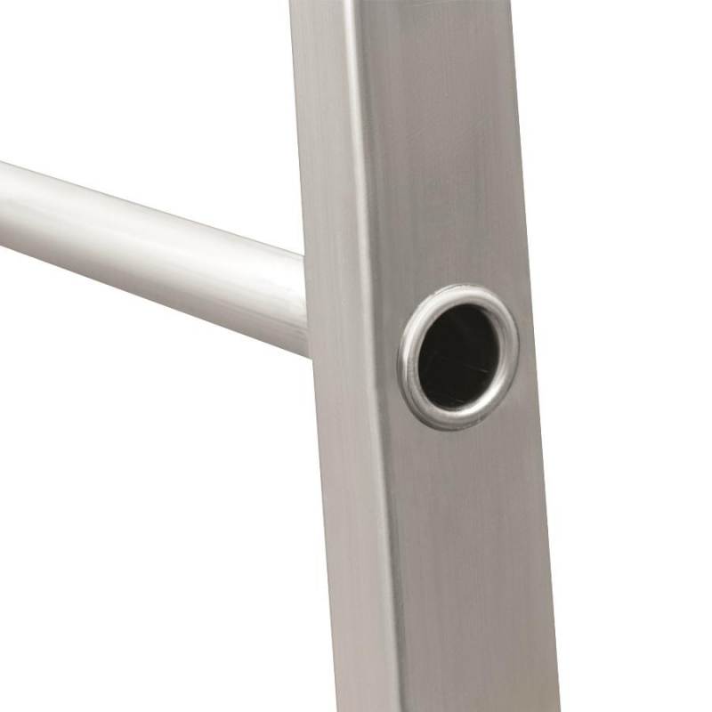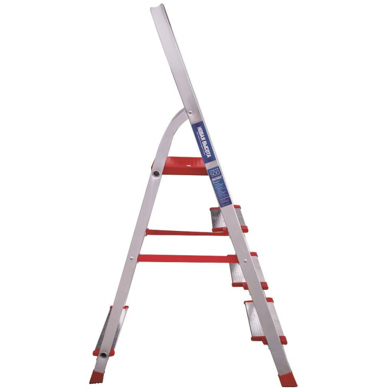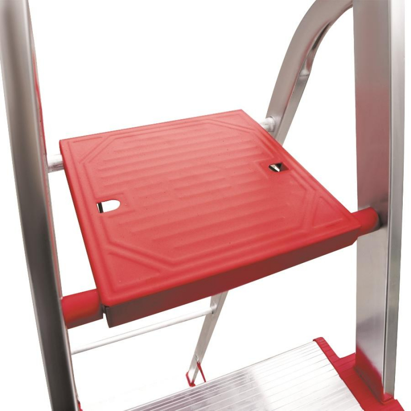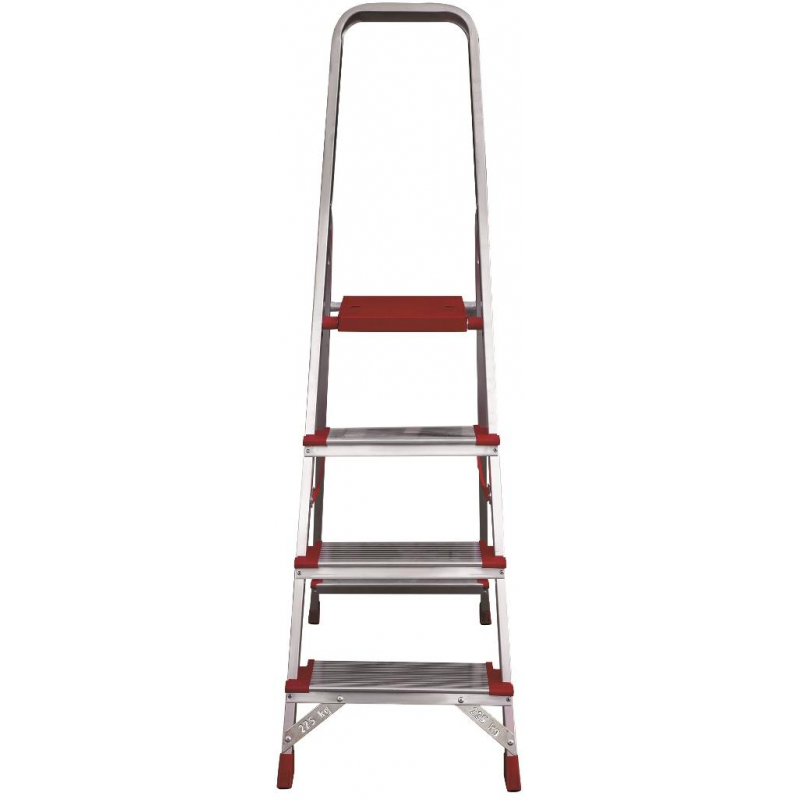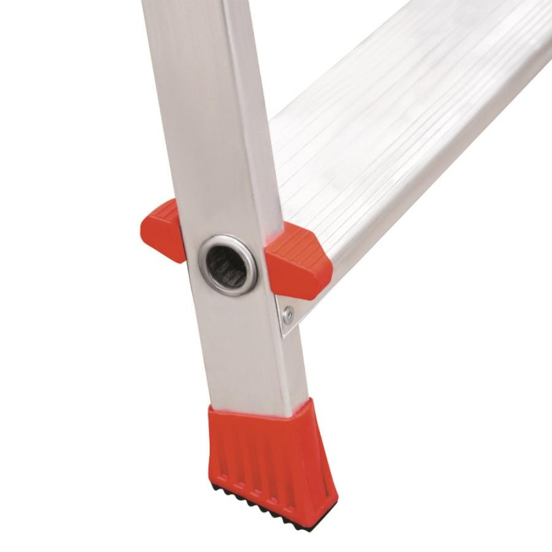 Имеет повышенную прочность и надежность при небольшом весе изделия. Легко устанавливается и обеспечивает высокий уровень комфорта. Ступени и стойки из прессованных алюминиевых профилей увеличенного сечения и широкие увеличенные ступени глубиной 130 мм. Прочные страховочные ремни и опорные наконечники из прочного пластика обеспечивают устойчивое положение. Компактность при хранении и транспортировке. Практичность и внимание к каждой детали гарантируют безопасность работы на любой высоте. Максимальная нагрузка 225 кг.