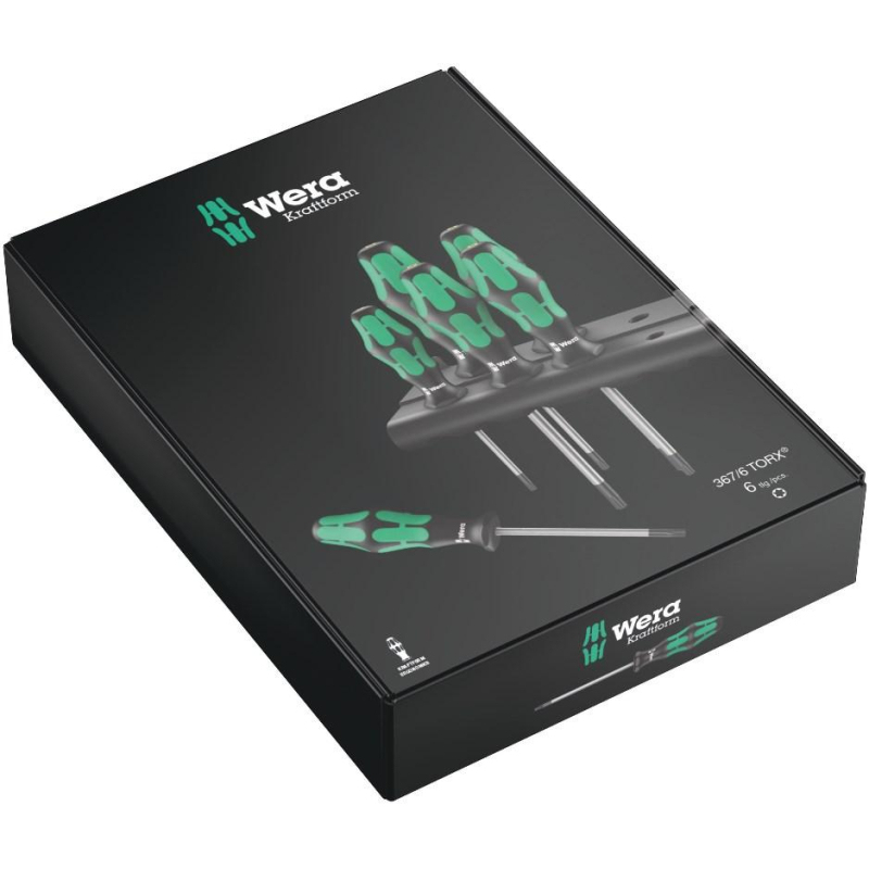 Набор из 6 отверток Torx. Многокомпонентная ручка Kraftform для работы в быстром и щадящем режиме. Kraftform Plus: твердые зоны ручки для высокой скорости работы, в то время как мягкие зоны ручки обеспечивают передачу больших моментов силы. Наконечник Wera Black Point и трудоемкий процесс закалки обеспечивают долгий срок службы наконечника, повышенную защиту от коррозии и высокую точность работы. С индикаторами инструментов "Take it easy": Цветовая маркировка профиля и гравировка размера. Шестигранный край ручки предотвращает надоедливое перекатывание отвертки на рабочем месте. Набор включает практичную подставку для удобного размещения отверток.Внешний вид и/или характеристики товара могут быть изменены производителем в соответствии с производственным процессом.