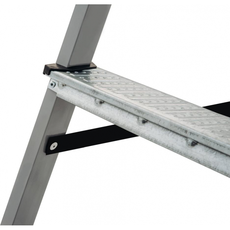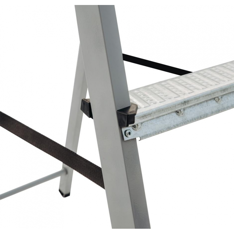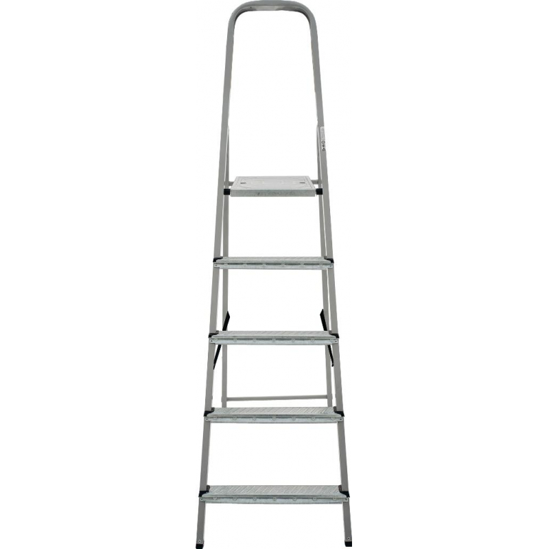 Высокая прочность и надежность при небольшом весе изделия. Простота установки и высокий уровень комфорта. Стойки каркасов и перекладины из стальных профилей с порошковой покраской. Рифленая поверхность ступеней для безопасного подъема и спуска. Прочное крепление ступеней к боковинам четырьмя заклепками для более высокой устойчивости конструкции. Прочные страховочные ремни. Опорные наконечники из прочного пластика для устойчивого положения. Компактность при хранении и транспортировке. Практичность и внимание к каждой детали гарантируют безопасность работы на любой высоте. Количество ступеней - 5. Материал- сталь.