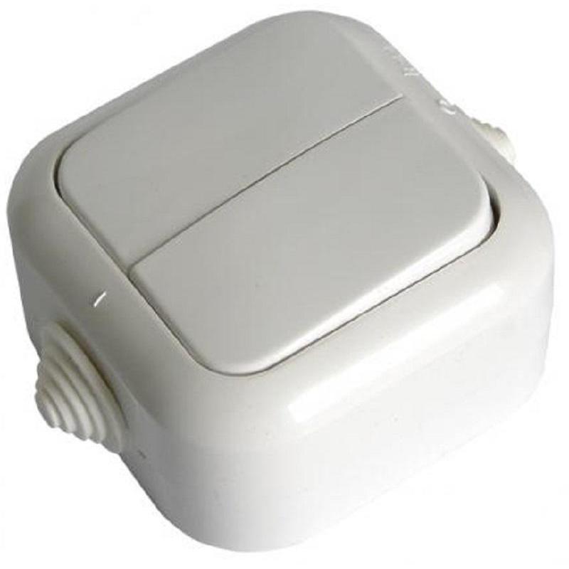 Выключатель двухклавишный А5 10-001 10А IP44 открытой установки влагозащищенный