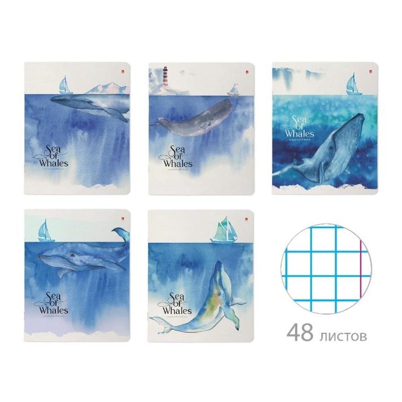 Тетрадь общая Альт Киты Акварель А5 48 листов в клетку на скрепке (обложка в ассортименте)