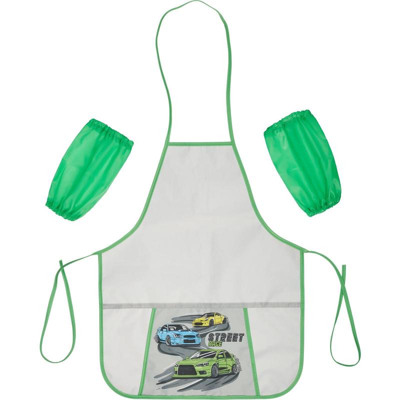 Фартук №1 School для труда и занятий творчеством для мальчика. Водоотталкивающая ткань защитит ребенка от загрязнений. Нарукавники в комплекте. Фартук с 1 карманом. Материал - полиэстер. Упаковка - ПП пакет с еврослотом. Размер изделия - 490x390 мм (на рост 104-128 см).
