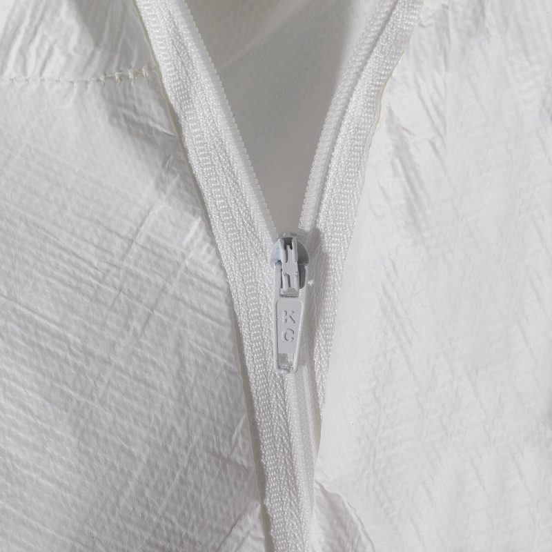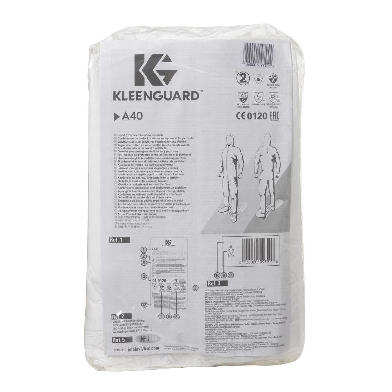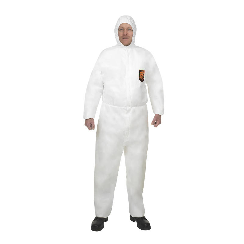 Одноразовый комбинезон Kleenguard A 40 с капюшоном белого цвета для защиты от проникновения брызг и частиц, в т. ч. и химического происхождения. Изготовлен из нетканого полипропилена с пленочным покрытием. Слоистый пленочный материал предоставляет надежный барьер от широкого диапазона химикатов. Ткань одноразового комбинезона состоит из 2-х слоев: наружный слой имеет пленочное покрытие, защищает от брызг, аэрозолей на основе многих жидкостей, твердых сухих частиц; внутренний слой - прочный, износостойкий нетканый полипропилен со свойствами ткани. Обеспечивает защиту от частиц, благодаря тому, что более 99% волокон размером более 1 микрона. Плотность: 76 г/кв. м. Kleenguard A 40 обеспечивает комплексную защиту от разных видов опасностей: тип 5 (EN 13882-1) - защите от опасных сухих веществ, тип 6 (EN 13034) - защита от небольших брызг растворов химических веществ, легких брызг неопасных жидкостей. Важными особенностями комбинезона являются: сверхпрочная ткань, прочный шов, усиленный тройной строчкой для защиты от разрыва, резинки на манжетах, штанинах и капюшоне обеспечивают плотное прилегание к телу. Капюшон разработан с учетом использования респиратора и обеспечения свободы движений. Молния по всей длине позволяет легко одеть и снять комбинезон. Максимальная защита от ворсинок, ламинирующая пленка и внутренние швы значительно уменьшают количество ворса. Антистатический материал EN 1149-1 предназначен для работы на участках повышенной безопасности. Изделие изготовлено без силикона, идеально для нанесения аэрозольных красок. Области применения: фармацевтическая промышленность, перерабатывающая промышленность, коммунальные предприятия, электроника, сельское хозяйство и покраска методом пульверизации. Размер 44-46, рост 164-170 (S).