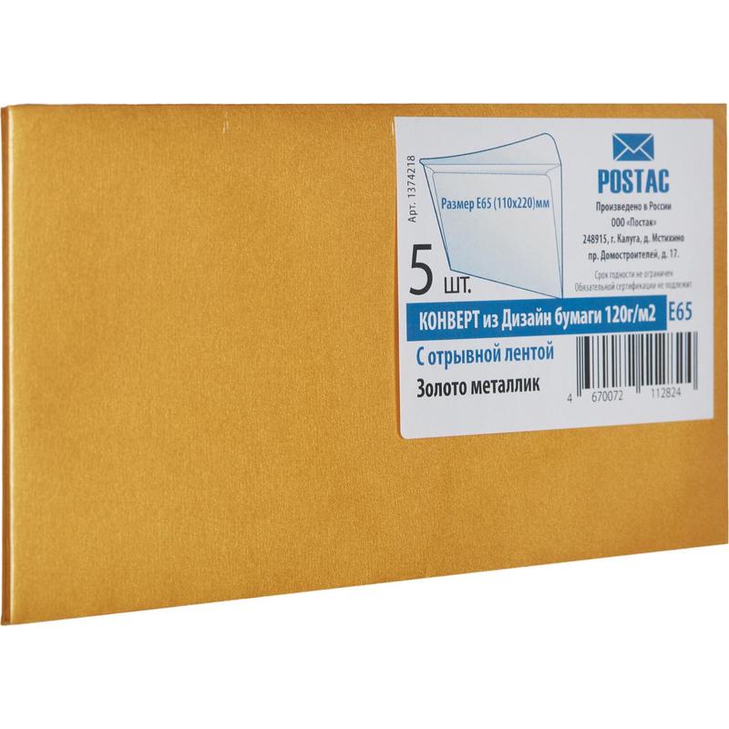Конверт E65 120 г/кв.м золотистый стрип (5 штук в упаковке)