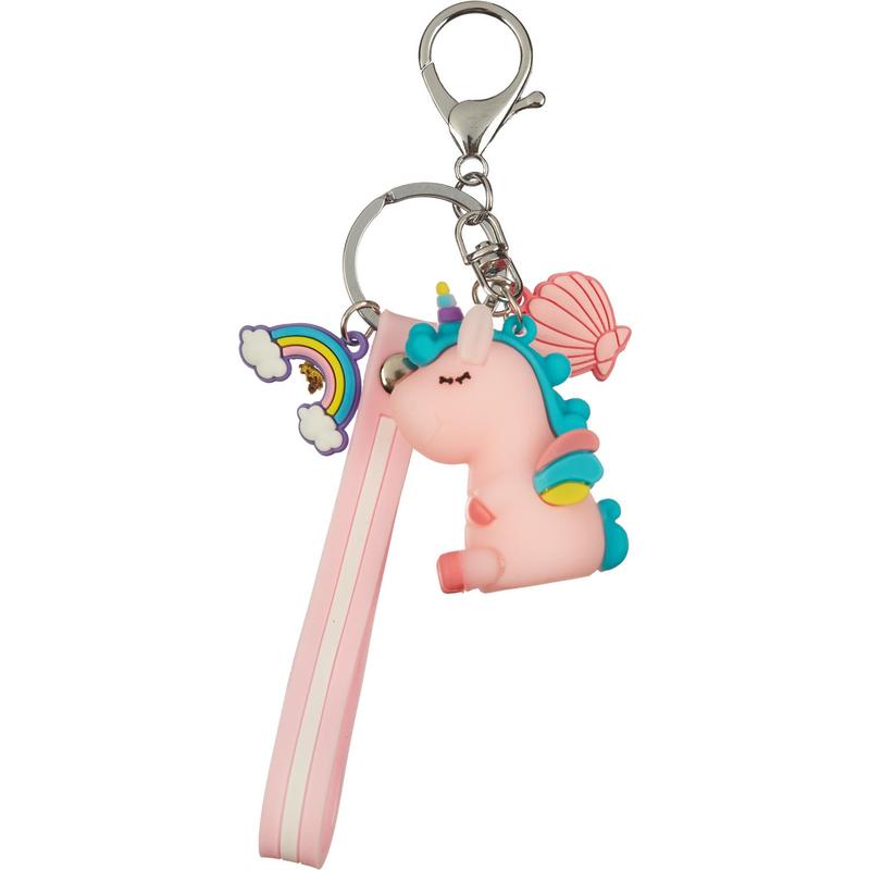 Оригинальный брелок 'Единорог розовый/бирюзовый'. Отлично подходит в качестве аксессуара для школьных ранцев, рюкзаков и сумок. Размер: 5,5x3,5 см.
