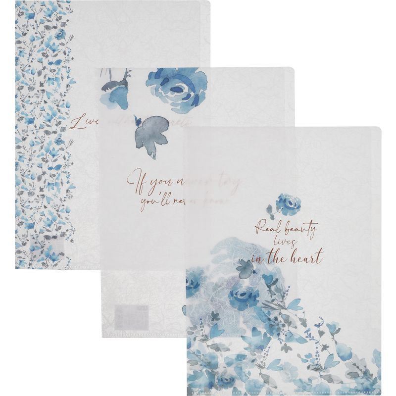 Папки-уголки Attache Selection Bloom А4 формата из экологичного полипропилена для хранения документов, 3 штуки в упаковке. Вмещает около 30 листов стандартной плотности. Плотность: 180 мкм.