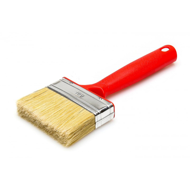 Флейцевая кисть изготовлена из натуральной светлой щетины. Рекомендуется к использованию для дисперсионных, латексных и фасадных красок. Имеет эргономичную пластмассовую ручку для легкости и удобства использования.