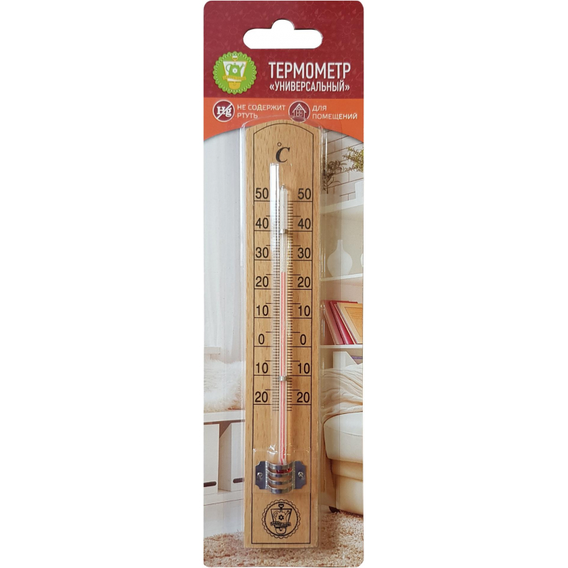 Термометр универсальный (466108) предназначен для измерения температуры воздуха в помещении. Изделие выполнено из дерева, снабжено металлической заслонкой и стеклянной колбой. Имеет широкий рабочий диапазон температур - от 20 до +50С со шкалой деления в 10С. Цена деления составляет 1С. Термометр снабжен специальным отверстием для крепления. Не содержит ртути. Термометрическая жидкость: метилкарбитол. Рекомендуется устанавливать в любом удобном для вас месте на уровне глаз, вдали от отопительных приборов, прямых солнечных лучей, кондиционеров и сквозняков, вблизи того места, где требуется выяснить температуру окружающего воздуха.