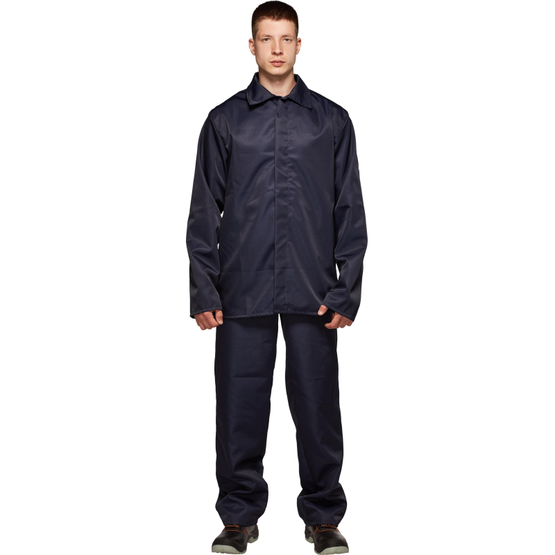 Костюм КЩС темно-синего цвета. Размер: 60-62. Рост: 170-176. Ткань: лавсан. Плотность: 245 г/кв.м. Потайная застежка на пуговицы. Карманы в боковых швах куртки. Накладные карманы брюк.