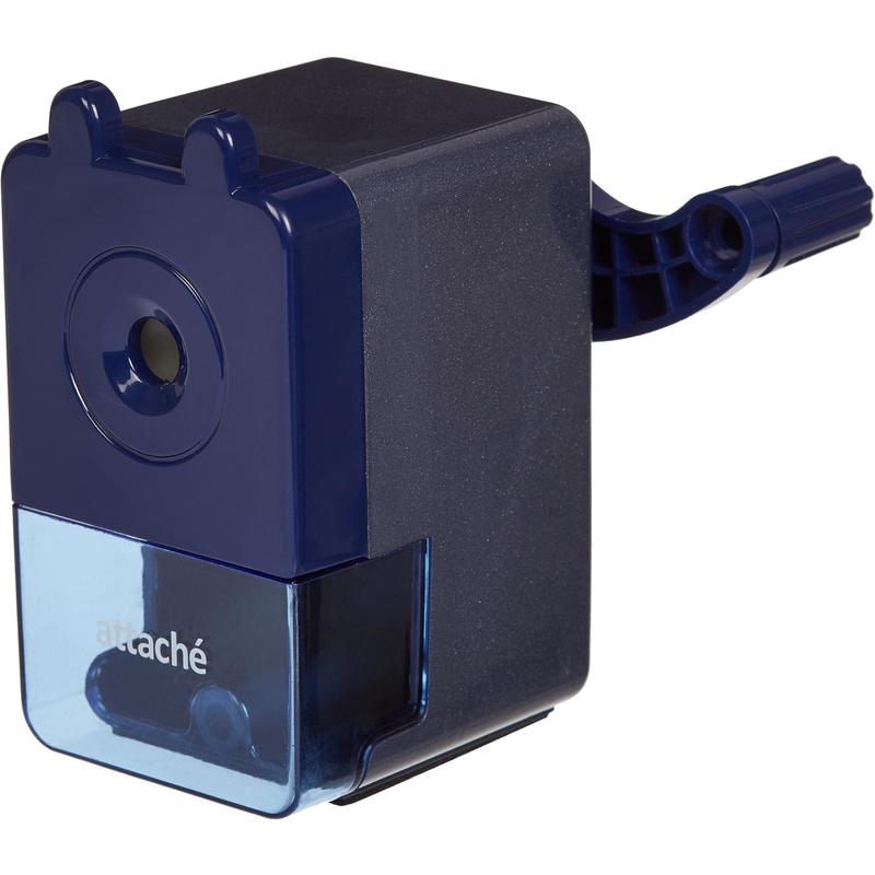 Механическая точилка с автофиксацией карандаша Attache Economy выполнена в корпусе из пластика синего цвета. Легкая и безопасная в использовании точилка оснащена металлическим сердечником и удобной ручкой, что позволит максимально быстро заточить большое количество карандашей. Предназначена для круглых, трехгранных или шестигранных карандашей диаметром до 8 мм. Ограничений по длине карандаша нет. Точилка имеет вместительный контейнер для сбора стружки. Точилка может крепиться к столу (струбцины в комплекте нет). Размер: 95x48x90 мм.Инструкция по использованию:1. Поместите карандаш в отверстие до упора.2. Придерживая точилку сверху, проворачивайте ручку по ходу часовой стрелки до тех пор, пока она не будет проворачиваться вхолостую.3. Поверните ручку несколько раз в обратную сторону - карандаш извлечется автоматически. Заточка не окончена, если ручка прокручивается с небольшим усилием.4. По заполнении контейнера для стружки требуется его очистка во избежание поломок и блокировки точилки.Рекомендована для использования дома и в офисе.Товар относится к ценовому сегменту "суперэконом". Имеет упрощенные характеристики и более простую упаковку. Отвечает основным требованиям потребления.