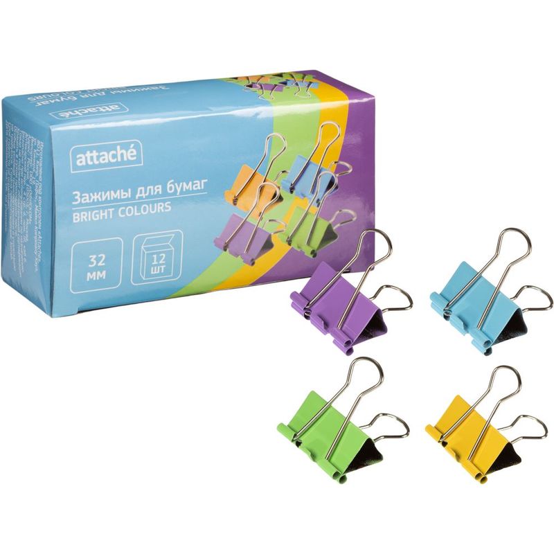 Металлические зажимы для бумаг Attache Bright Colours используются для скрепления документов без использования степлеров. Зажимы с цветным покрытием. Цвета зажимов в ассортименте. Размер зажима: ширина 25 мм, высота 52 мм, глубина закладки 17 мм. Позволяет скреплять до 100 листов плотностью 70 г/кв.м, не деформируя при этом бумагу. Зажимы для бумаг поставляются по 12 штук в картонной упаковке.