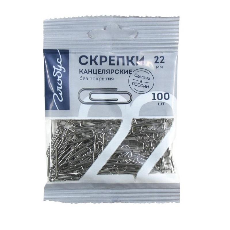 Скрепки 22 мм Globus металлические (100 штук в упаковке)