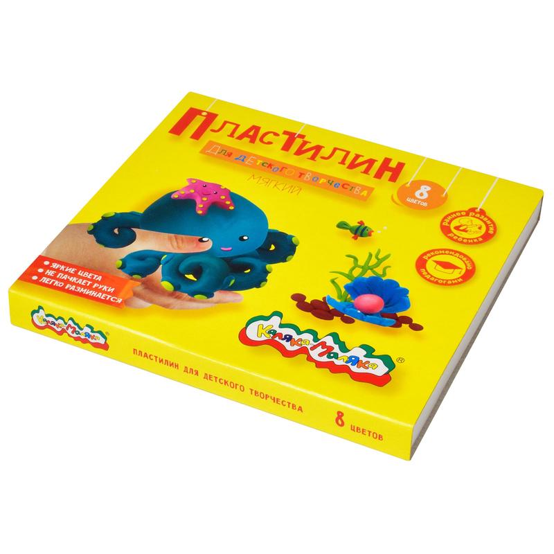 Пластилин для детского творчества Каляка-Маляка - это улучшенная формула классического пластилина. Благодаря повышенному содержанию воска, маленькие любители творчества без труда смогут смять брусок и придать ему нужную форму. Имеет яркие сочные цвета, мягко растягивается и не рвется, прекрасно держит форму. При этом не окрашивает руки, не прилипает и не оставляет масляных пятен. Изготавливается на современном российском производстве, соответствует всем стандартам безопасности детской продукции. Пластилин для детского творчества может применяться для творчества детей, начиная от трех лет. Развивает мелкую моторику рук и творческое мышление у детей. Прекрасно подходит как для создания фигур, так и для рисования пластилином. Рекомендуется и для домашних поделок, для уроков труда в школе и занятий творчеством в детском саду. В наборе пластилин восьми цветов с удобным пластиковым стеком.