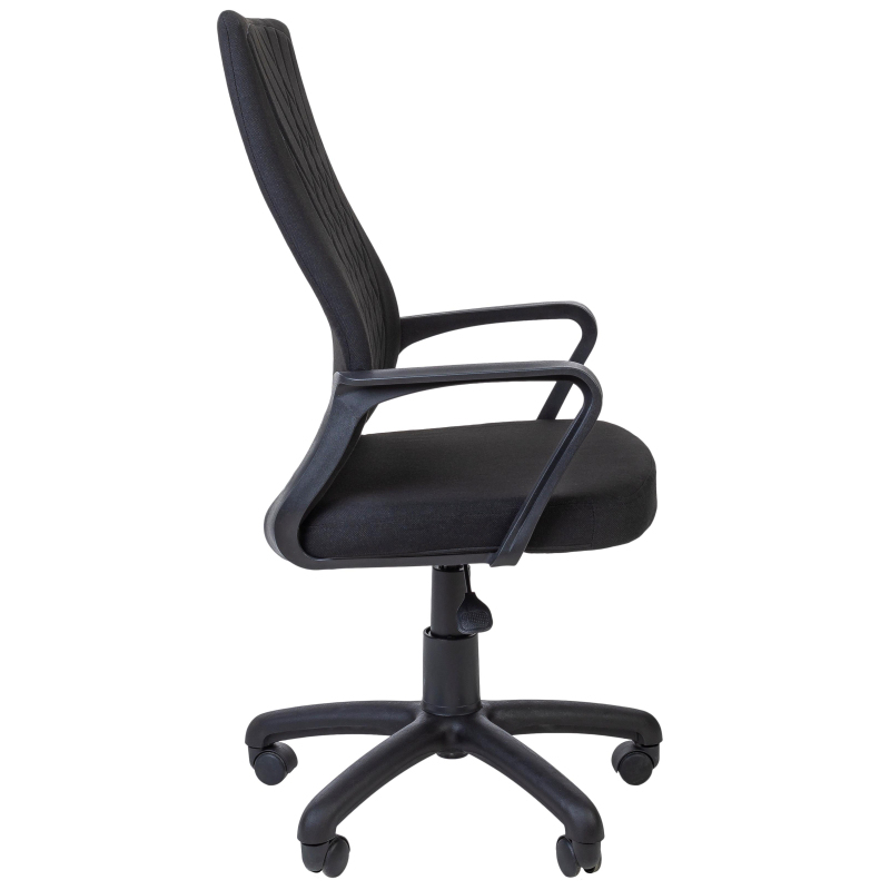 Кресло для руководителя RC РК 171 обито тканью С черного цвета, крестовина изготовлена из пластика. Кресло имеет регулировку по высоте (газлифт). Максимальная статическая нагрузка - 120 кг. Изображения товаров на сайте не могут гарантировать точную цветопередачу.