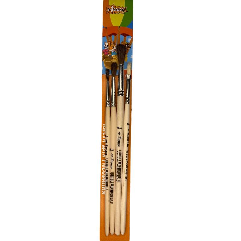 Комбинированный набор из кистей пони, белки и щетины будет хорошим помощником начинающему художнику. Набор довольно универсален и позволяет работать в различных техниках рисования. Размер ручки: короткая 145 мм (14,5 см). Материал: дерево, не окрашено. Упаковка: пакет с европодвесом.