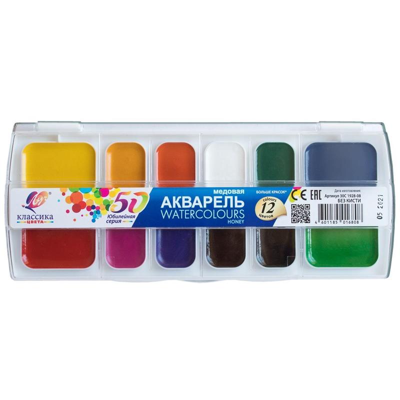 Компания Луч представляет ограниченную серию полусухих акварельных красок Классика Юбилейная, выпущенную в честь 50-летия бренда! Набор представлен палитрой - 12 цветов. Отличительной особенностью лимитированной серии является то, что пластмассовое донышко набора акварели содержит увеличенные кюветы с часто используемыми цветами, поэтому красок в этих наборах значительно больше. С этими наборами юные художники смогут нарисовать значительно больше замечательных рисунков. Классика Юбилейная - это высококачественная медовая акварель, в составе краски использованы только безопасные материалы и пигменты. Цвета акварели - чистые, яркие, устойчивые к выцветанию, они отлично смешиваются между собой. Краски выпускаются в пластмассовой упаковке с прозрачной крышкой, которую можно использовать как палитру. Высококачественная краска для детского творчества с яркими и чистыми цветами, изготовленная по классической рецептуре с использованием меда. Прекрасно размывается и разносится по поверхности бумаги. Краски смешиваются между собой, сохраняя насыщенность цвета. Акварель легко смывается с рук и одежды. Хранить в сухом отапливаемом помещении при температуре не ниже 0°С на расстоянии не менее 1 м от приборов отопления. Размер упаковки (ДхШхВ): 218x91x12 мм. Кисточка в комплект не входит.