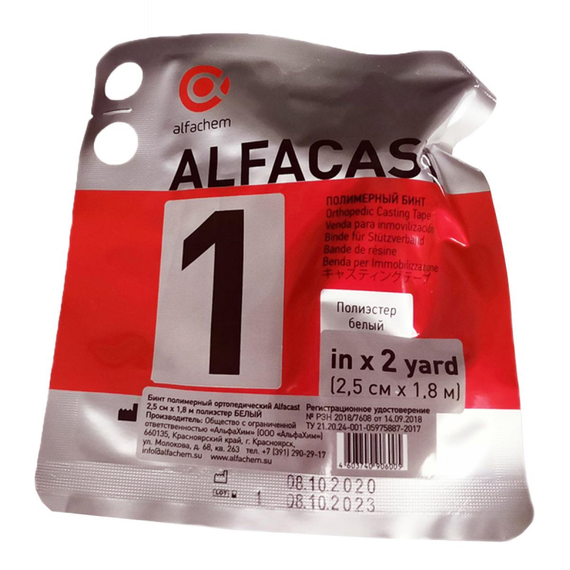 Бинт Alfacast - современная альтернатива гипсовой повязке. Предназначен для изготовления фиксирующих повязок при иммобилизации переломов, вывихов, травмированных суставов, поврежденных связок опорно-двигательного аппарата, при ортопедических заболеваниях и после травматолого-ортопедических операций. Применяется в качестве иммобилизующего и ортезирующего средства. Бинт рентгенопрозрачный, надежно фиксируется и практичен в применении. Влагоустойчив. Материал: полиэстер и полиуретановая смола. Ширина - 2,5 см. Длина - 1,8 м.