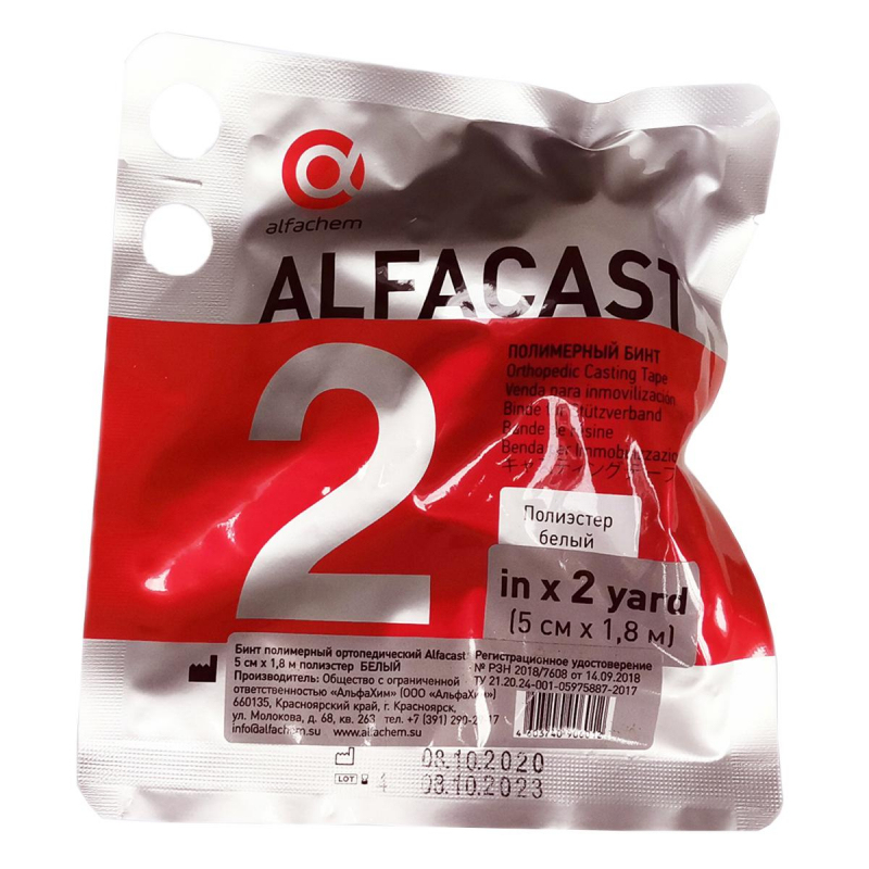 Бинт Alfacast - современная альтернатива гипсовой повязке. Предназначен для изготовления фиксирующих повязок при иммобилизации переломов, вывихов, травмированных суставов, поврежденных связок опорно-двигательного аппарата, при ортопедических заболеваниях и после травматолого-ортопедических операций. Применяется в качестве иммобилизующего и ортезирующего средства. Бинт рентгенопрозрачный, надежно фиксируется и практичен в применении. Влагоустойчив. Материал: полиэстер и полиуретановая смола. Ширина - 5 см. Длина - 1,8 м.