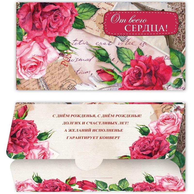 Конверт для денег От всего сердца! 10шт/уп женская тематика КД-211