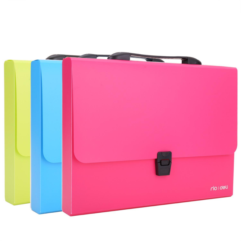 Папка-портфель Deli формата А4 с ручкой. Папка изготовлена из полипропилена. Имеет одно вметительное отделение и закрывается широким клапаном с защелкой. Ручка изготовлена из прочного пластика. Вы сразу почувствуете насколько удобно и приятно держать сумку в руках. Документы, рисунки, эскизы, журналы, тетради будут надежно сохраненны. Практичная застежка обеспечивает быстрый доступ к бумагам и удобна для частого использования. Отличное и портативное решение для школьников младших, старших классов и студентов. Сочетается с другими изделиями коллекции Deli Rio. Внимание! Товар поставляется в различных вариантах дизайна/цвета без возможности выбора.