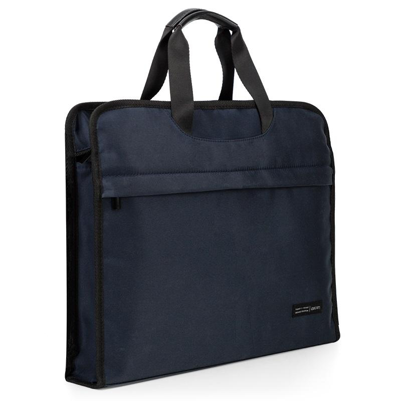 Папка-портфель из полиэстера Deli на молнии для документов (400х300х60 мм). Стильный синий офисный портфель компактных размеров подходит для переноски офисных и личных вещей первой необходимости: планшет, ноутбук, телефон, папки с файлами. Папка-портфель имеет большое основное отделение на молнии с мягким ходом. Также имеется внешний карман на молнии, что позволяет хранить кошелек, солнцезащитные очки и другие личные вещи. Для Вашего комфорта ручки папки выполнены из стропы, их комфортно держать в руках. Ваши документы будут надежно сохраненны. Отличное и портативное решение для хранения документов для деловых людей