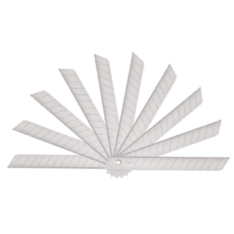 Лезвия запасные для канцелярских ножей. Сталь SK5. В боксе 10 лезвий. Каждое лезвие имеет 13 сегментов. Толщина лезвия 0,4 мм.