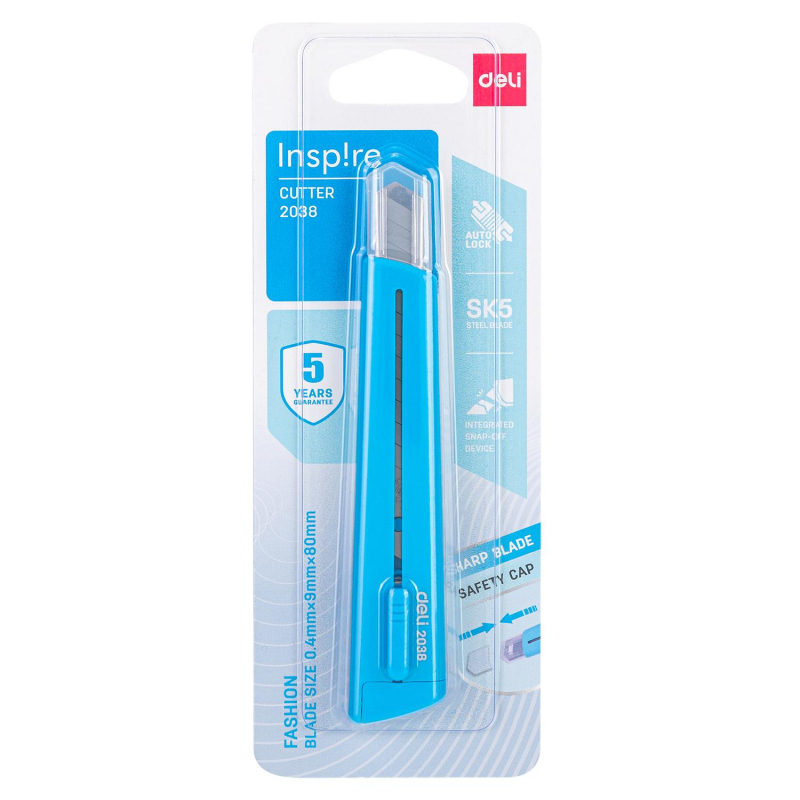 Канцелярский нож RIO - простой, удобный и доступный инструмент. Идеально подходит для резки бумаги, ткани, картона, пленки, ленты стрейч, кожи, а также для проведения ремонтных работ, не требующих приложения больших усилий, складских работ. Нож имеет надежный пластиковый корпус. Автоматическая фиксация сегментированного лезвия. Металлические направляющие для лезвия увеличивают прочность ножа, создают дополнительную жесткость при разрезании плотных материалов. Выдвижное стальное лезвие, шириной 9 мм, можно установить на любую удобную длину, заменить в случае необходимости. Нож может быть использован с лезвиями с углом 60°. Оснащен специальным колпачком с прорезью для отламывания израсходованных сегментов лезвия. Каждое лезвие имеет 13 сегментов. Нож поставляется в блистерной упаковке. Цвет синий.