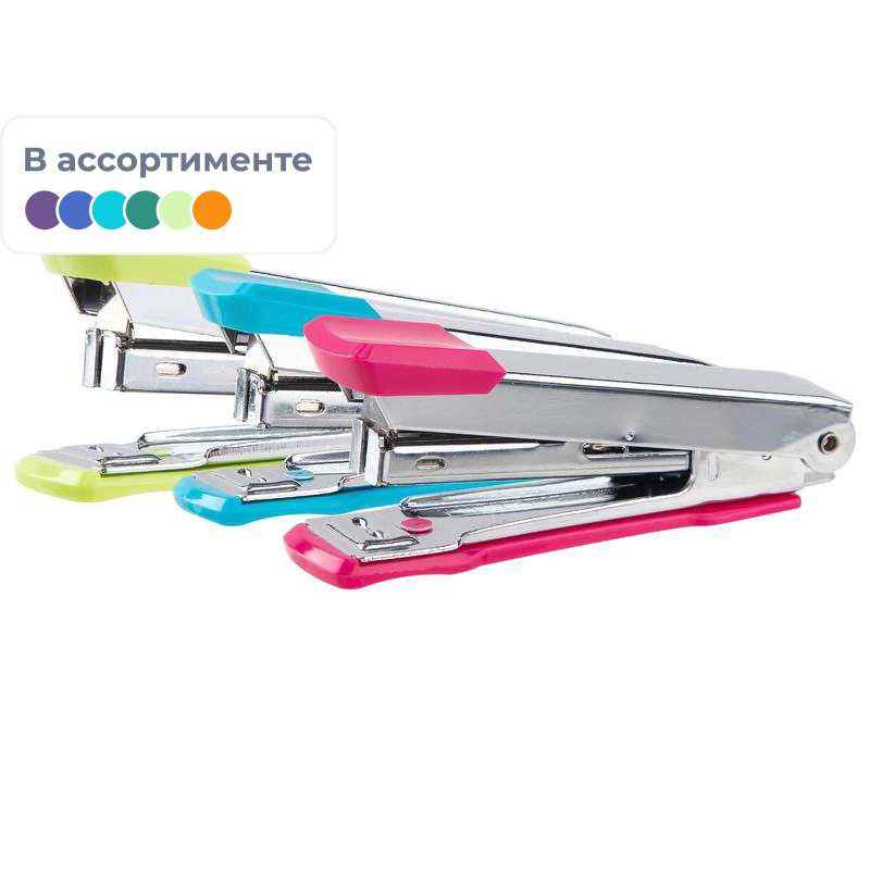 Цельнометаллический степлер Deli Essential с пластиковыми накладами. Одновременно сшивает до 15 листов бумаги плотностью до 80 г/кв.м. Размер используемых скоб: № 10. Емкость загрузки скоб: 50 штук. Плавный процесс сшивания листов. Виды сшивания: закрытый, прямой. В данной модели интегрированный стальной антистеплер, который позволяет разжать закрепленные скобы, не нанося вреда ногтям. За счет компактного размера он не займет много места на рабочем столе. Необычный яркий дизайн обязательно найдет своего обладателя! Размер степлера 94x40x24 мм, Вес 66.2 г. Внимание! Товар поставляется в различных вариантах цвета без возможности выбора.