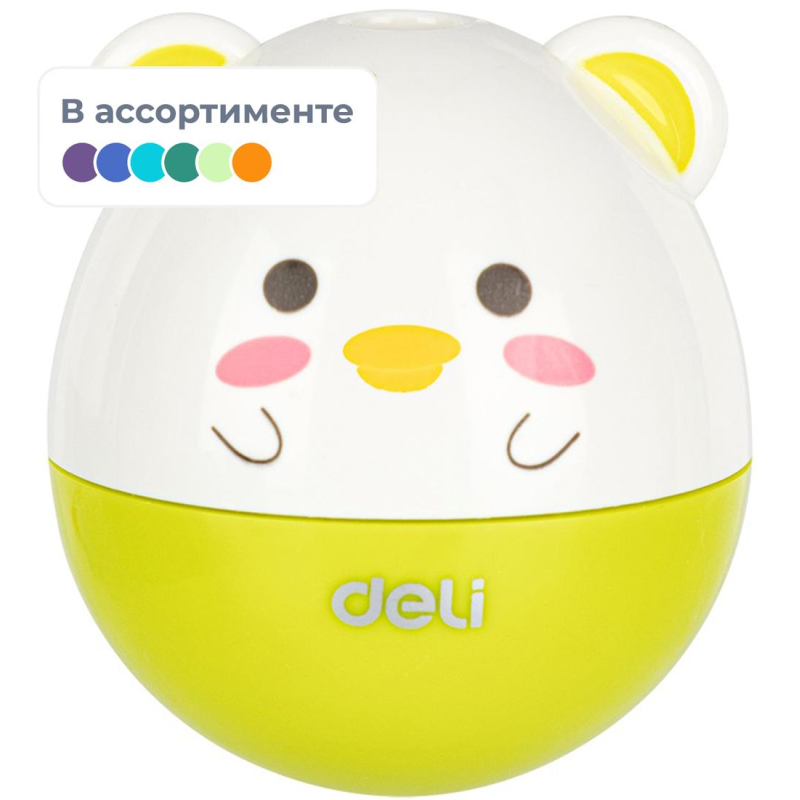 Точилка ручная для карандашей Deli 'Неваляшка' с одним отверстием обеспечивает плавную и мягкую заточку. Имеется вместительный резервуар для стружки. Корпус из АБС-пластика: высокая ударопрочность, устойчивость к падению и износу. Точилка обеспечивает быструю заточку всего за несколько секунд. Высококачественное стальное лезвие и точно рассчитанная конструкция, позволяют сделать процесс затачивания не только легким, но и сводят риск поломки грифеля к нулю. Незаменимый атрибут школьника. Размер: 59x51x51 мм. Поставляется в блистере. Внимание! Товар поставляется в различных вариантах цвета/дизайна без возможности выбора.