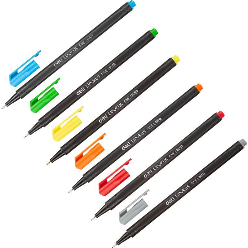 Набор линеров Deli Linkus. Диаметр пишущего наконечника: 0,45 мм. Благодаря системе подачи чернил обеспечивается очень гладкое, легкое и ровное письмо. Ручка с игловидным пишущим наконечником обеспечивает необыкновенно мягкое и четкое письмо на любой бумаге. Можно писать мелким шрифтом, закрашивать сложные детали, работать с линейками и трафаретами. Ваша рука не будет напрягаться. Долгое время сохраняет работоспособность без колпачка. Колпачок соответствует цвету чернил. Имеет пластиковый черный корпус. Ручка пишет в любом положении, надписи мгновенно высыхают на бумаге и не размазываются. Чернила на водной основе, без запаха, легко смываются с рук и отстирываются с ткани. В наборе 6 цветов.